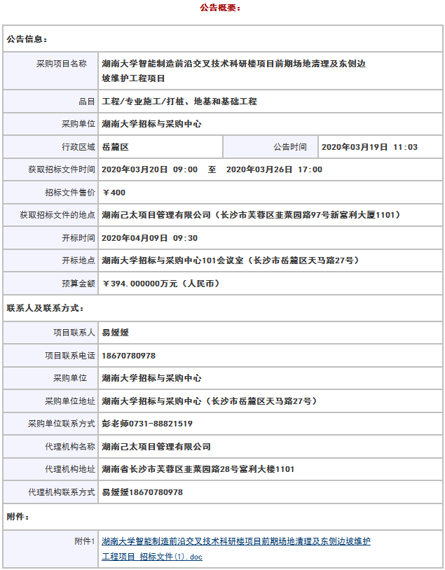 上一条:智能制造前沿交叉技术科研楼项目前期场地清理及东侧边坡维护工程项目中标公告 下一条:湖南大学空调采购一批项目中标公告