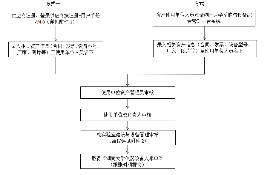 附件2:湖南大学实验室建设与设备管理处《新购设备、材料或新增附件验收建账流程》http://szc.hnu.edu.cn/info/1293/1879.htm